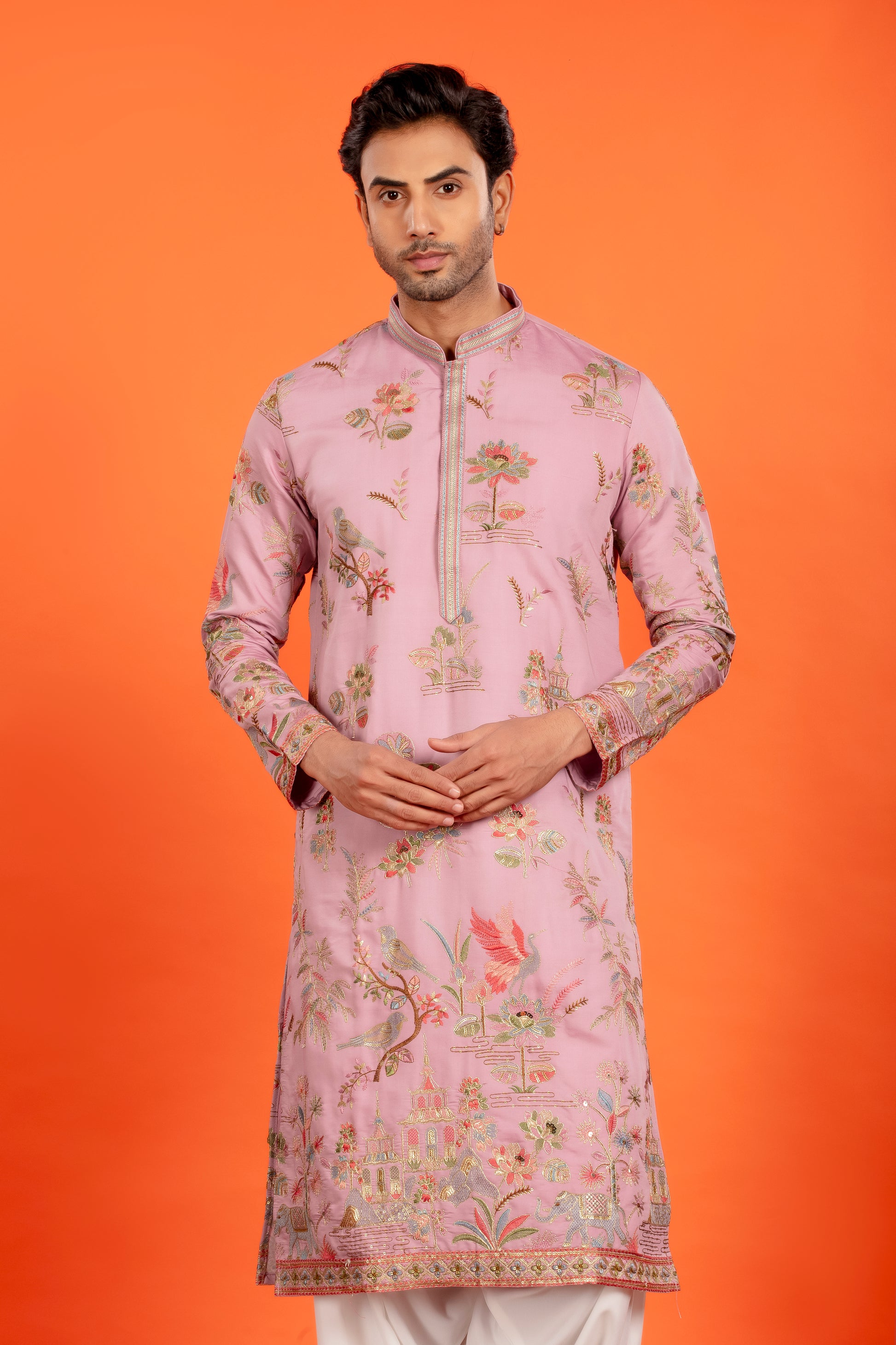 Nivaan – Rose Dust Heritage Embroidered Kurta with Patiala