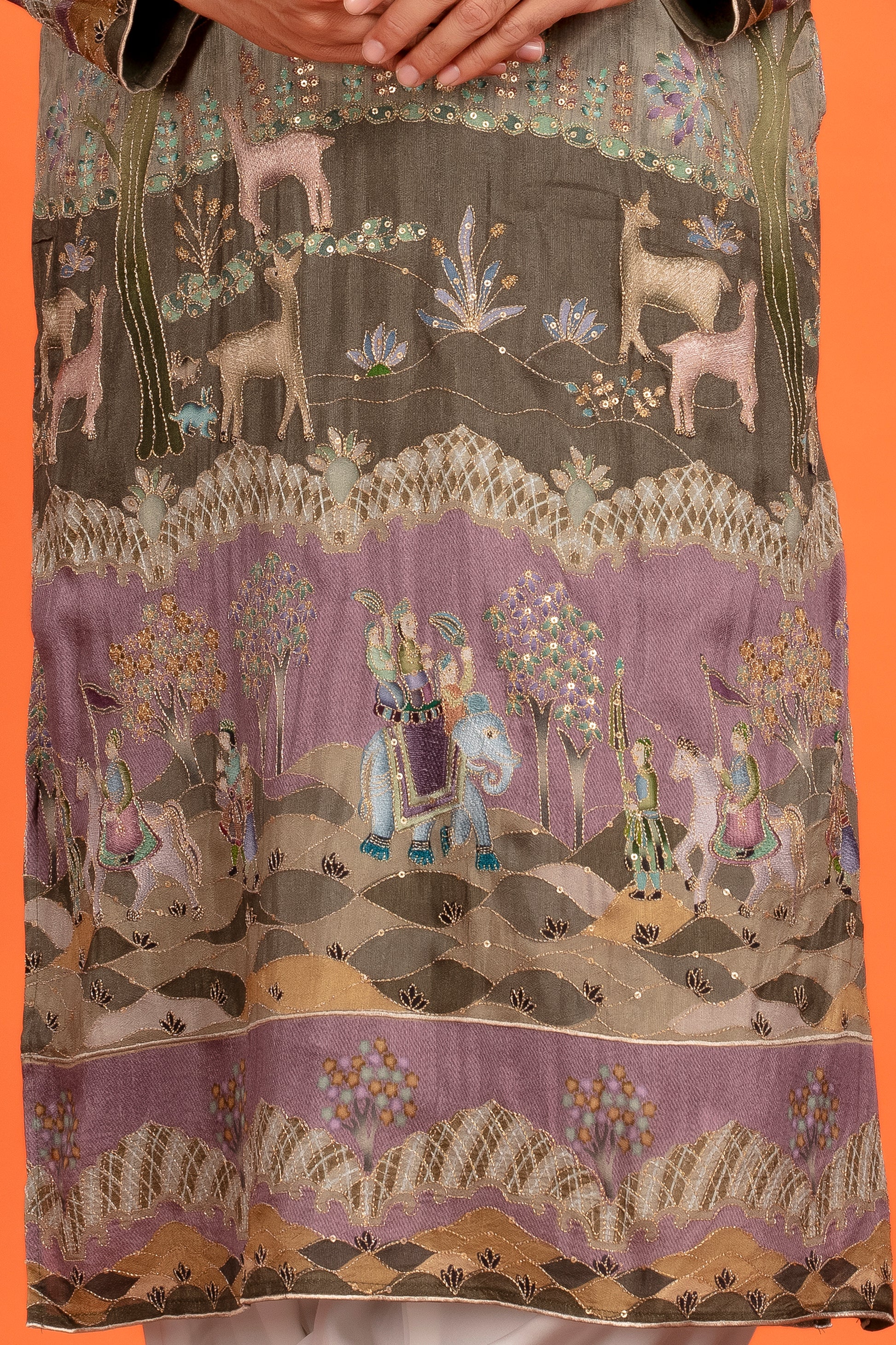 Fabric: Silk Blend with Digital Heritage Print ,Thread Embroidery