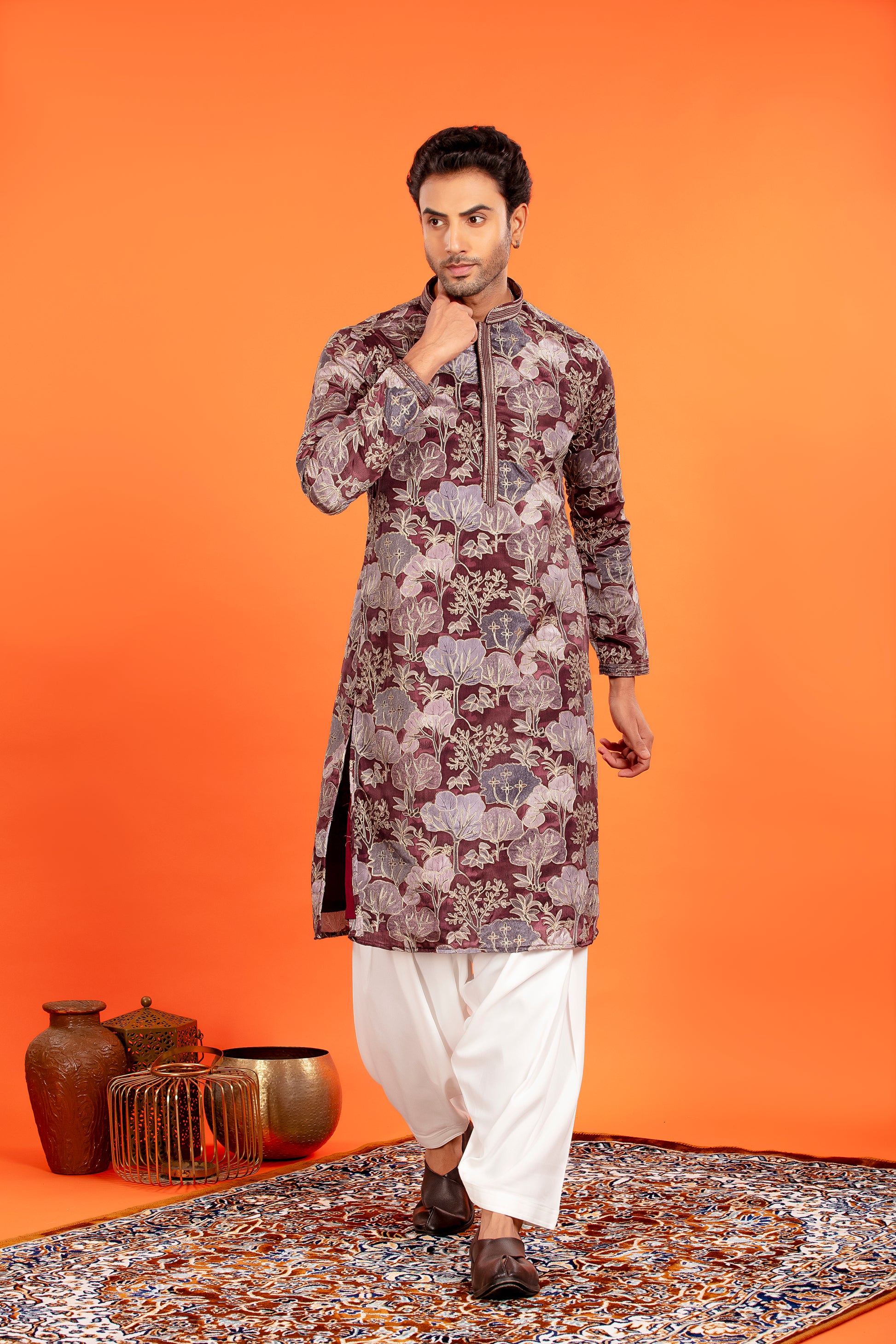 Zarham – Opulent Maroon Floral Brocade Kurta Patiala Set